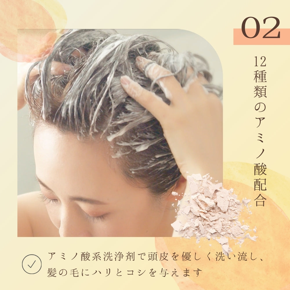 美しい髪には健康な⼟台・頭⽪環境づくりが⼤切です。うるおい成分(ハチミツ、グリセリン、ソルビトール、グリコシルトレハロース)を 豊富に含んだもちもちの泡が、臭いの元となる頭⽪の⽪脂や⽑⽳汚れを除去。頭⽪に柔軟性を与えながらしっかり保湿することで、地肌本来の⼒を引き出します。髪や頭⽪がデリケートな⽅にもお使いいただけるよう、以下の11のフリーを実現しました。