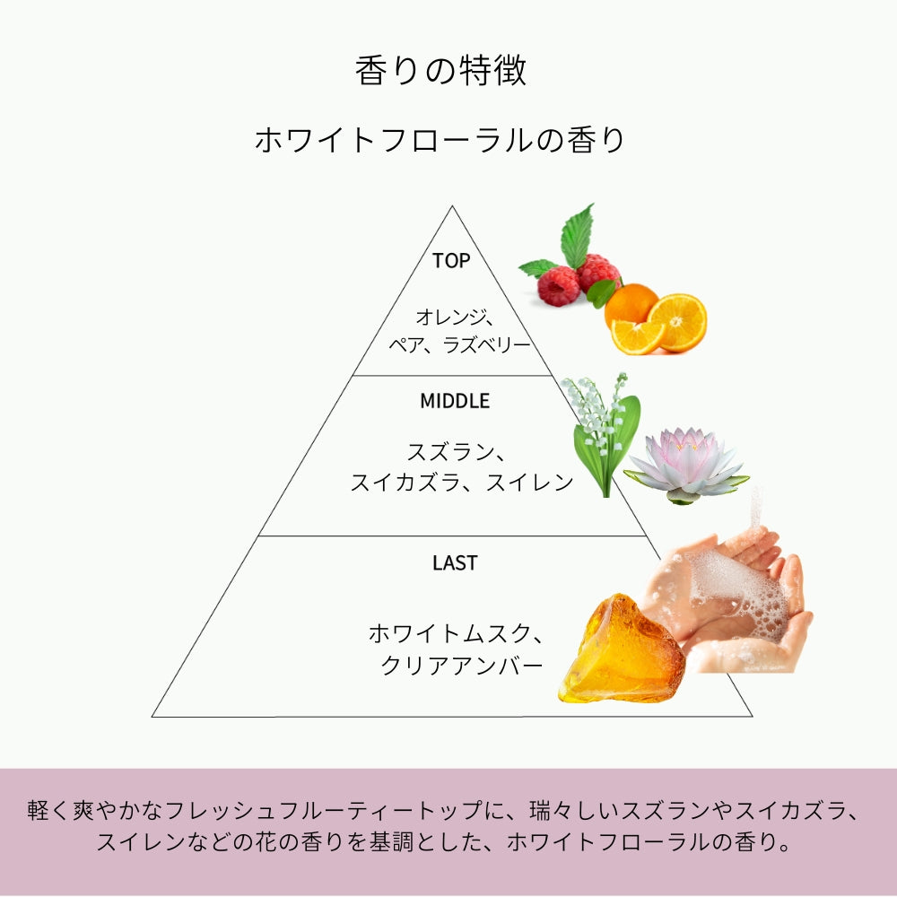 優しく自然な香りが、いつものバスタイムに癒しと安らぎのひとときを演出します。