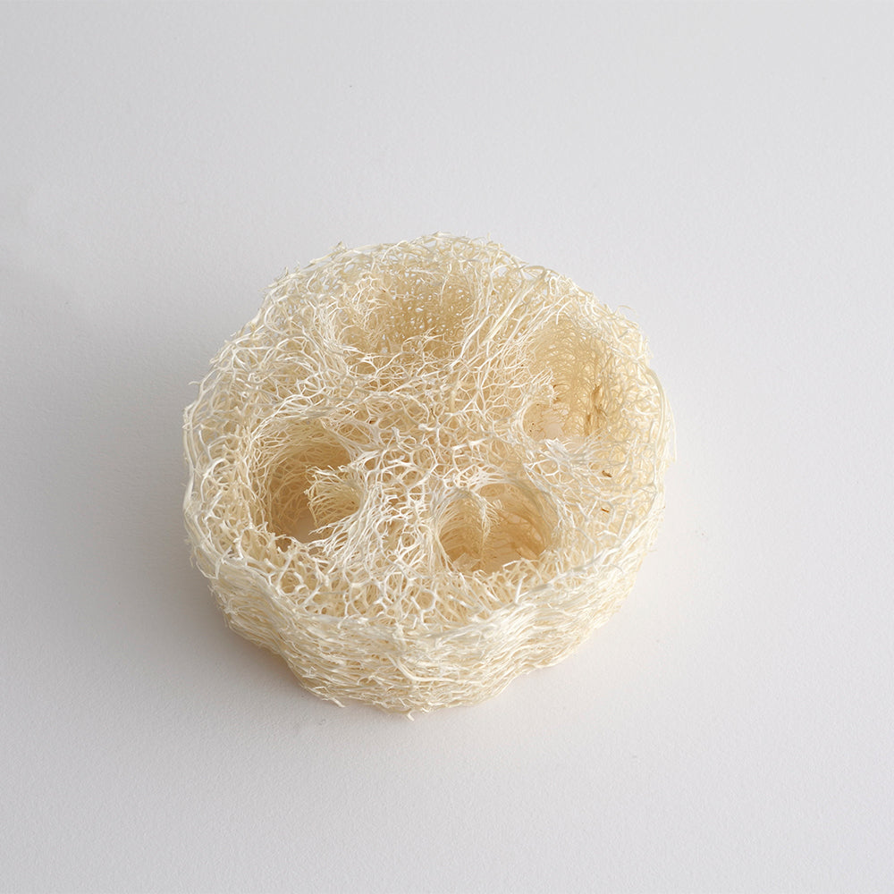 北アルプス立山連峰の雪解け水の伏流水で潤った富山県農場で、40年間無農薬栽培しているへちまの石けんトレイです。